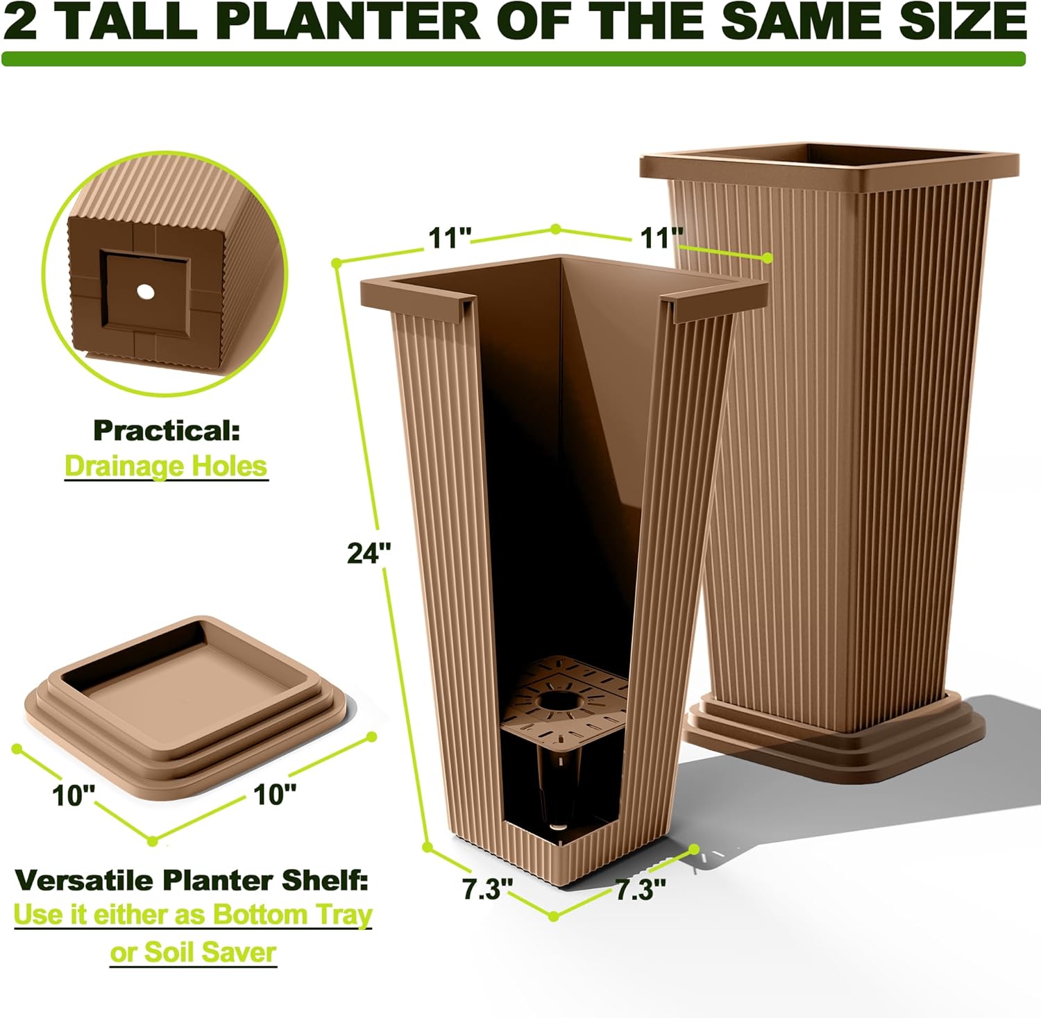 - Smart Drainage with Bonus Tray System: Each tall outdoor planter includes a custom-fit drainage tray to promote proper water flow and air circulation, helping to prevent root rot and keep your plants healthy. This makes these planters a great solution for your porch, patio, or any indoor space.