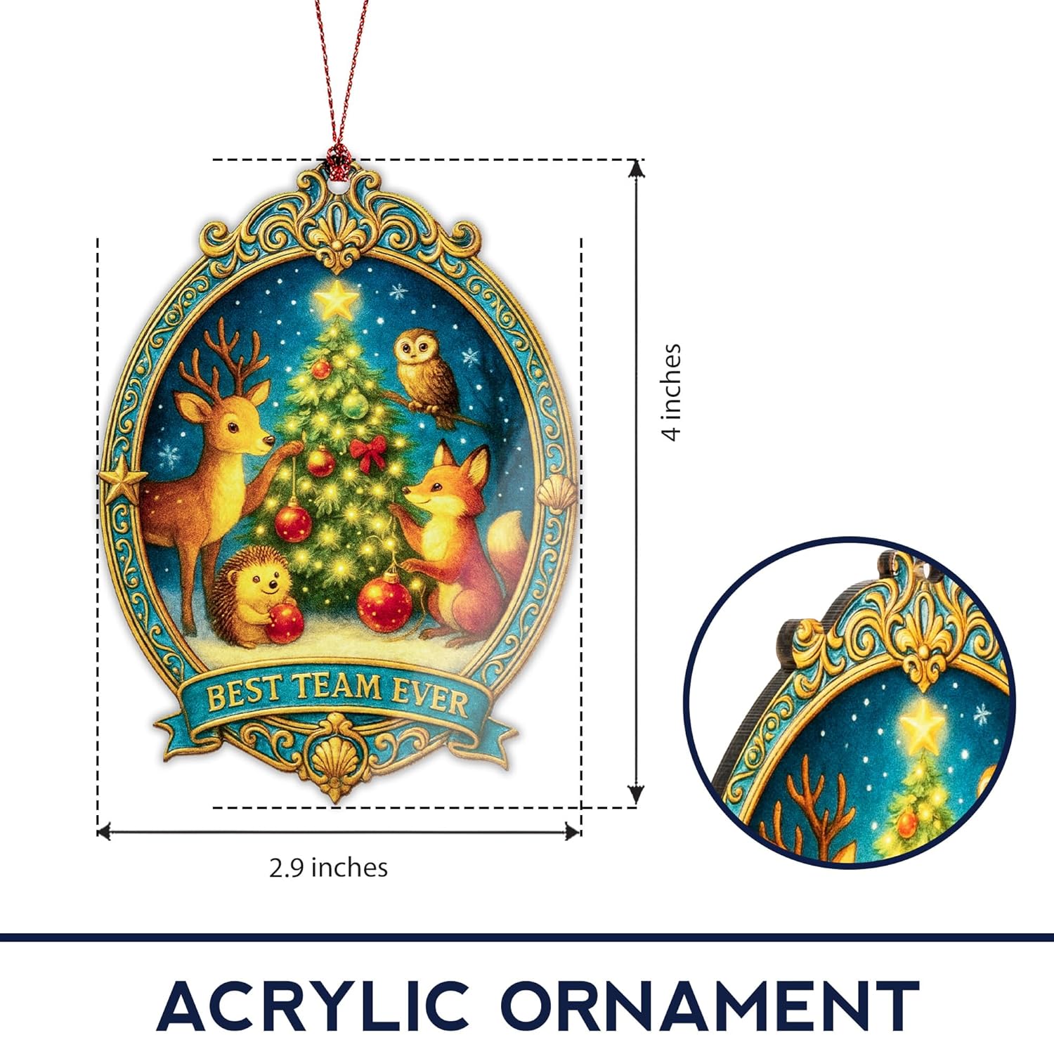 Best Team Ever Ornament – Coworker Gifts | Team Ornament + Employee Appreciation Gift – Office Christmas Ornament 2025 – Suncatcher Effect Stained Glass Window Hanging – Car Hanging Decoration