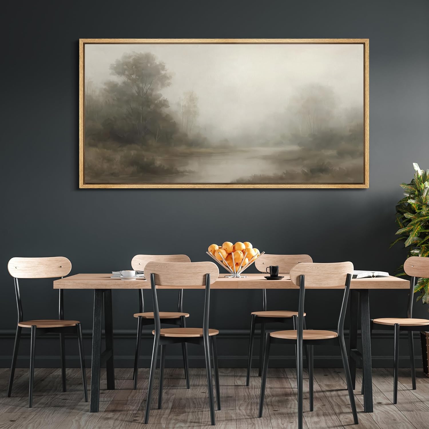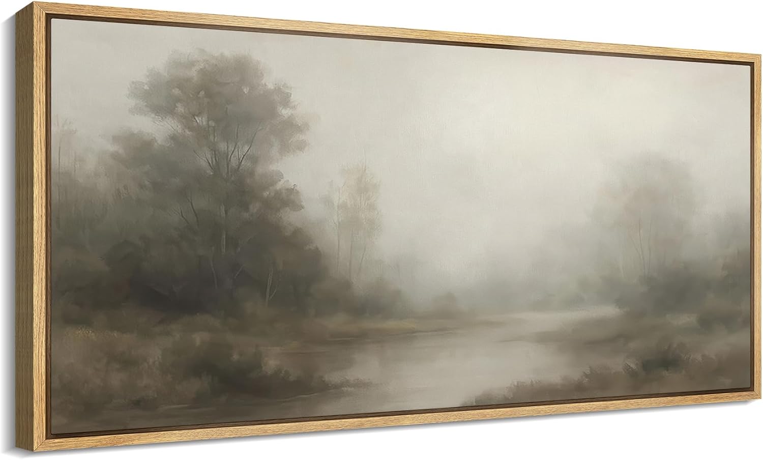 MUDECOR Extra Larg Framed Canvas Print Wall Art Misty Forest River Landscape Neutral Tones Nature Illustrations Decorative Colorful for Bedroom - 60"x30"